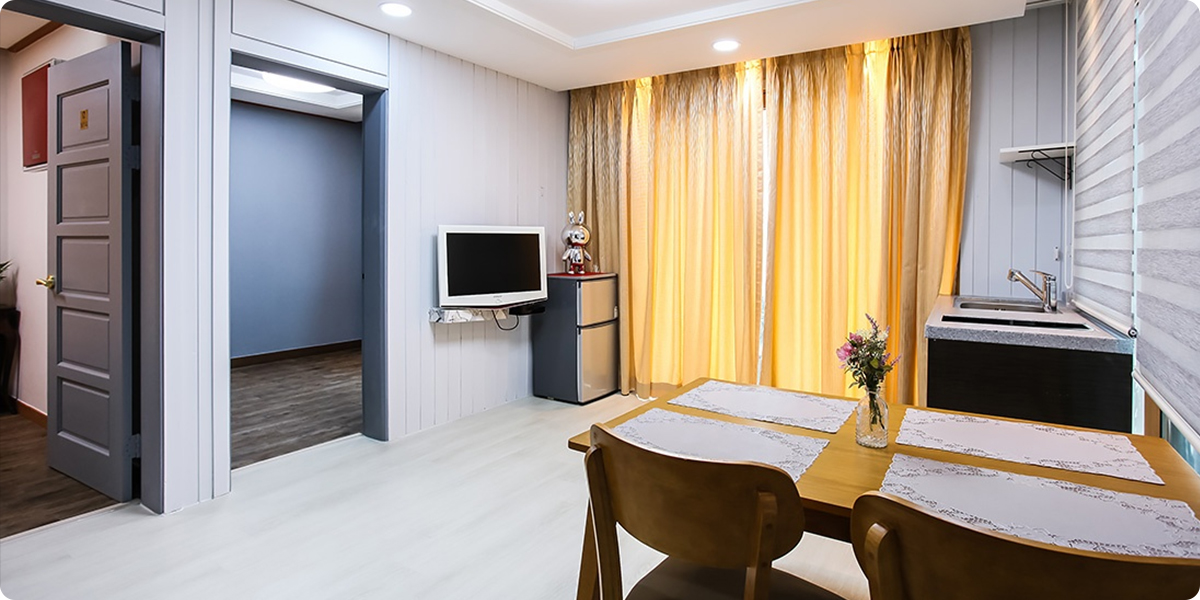 객실구조 침대룸A(더블1) + 온돌룸A(여분 침구류1) + 화장실1 + 거실1