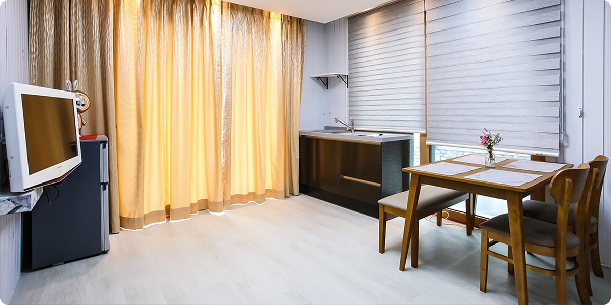 구비시설 TV, 침대, 에어컨, 냉장고, 드라이기, 취사도구,